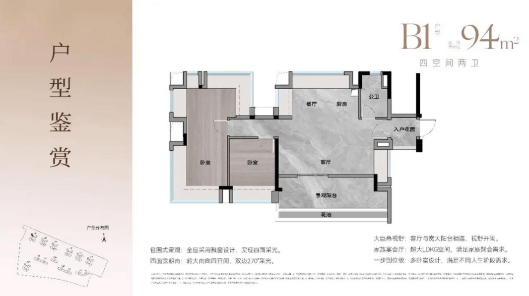 专梯入户设计,自带仪式感。只有您和您的家人才能到达家门口,私密性极佳。16层的低楼层设计,居住更舒适,避免了高层的风噪和眩晕感。南北双园林景观加持,推窗即景,满目苍翠。125㎡户型更是做到了四房双主套,长辈与年轻人各自拥有独立空间,隐私性得到最大程度的保护。大面宽设计搭配南北对流,居住舒适度堪比大平层。无论是客厅的开间,还是卧室的进深,都达到了豪宅的标准。住在这里,不仅仅是居住,更是一种身份的彰显,一种生活态度的表达。