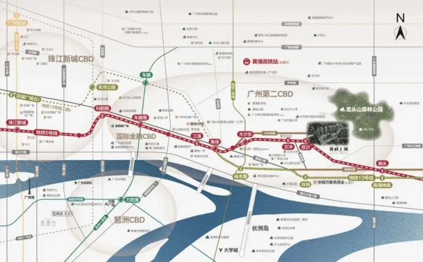 广州地铁珑岄上城正是占据了双沙板块的核心位置。项目周边路网发达,除了上述提到的主干道外,还有多条城市次干道和支路构成了密集的毛细血管网络,确保了区域内的交通微循环畅通无阻。无论是日常通勤还是周末出游,业主都能享受到极高的出行效率。更为难得的是,在如此核心的地段,竟然还保留着大面积的自然山体资源。龙头山森林公园如同一个巨大的绿色屏障,矗立在板块北侧,为整个区域提供了源源不断的负氧离子和清新的空气。这种“城中山、山中城”的独特格局,在广州主城区内实属罕见。
